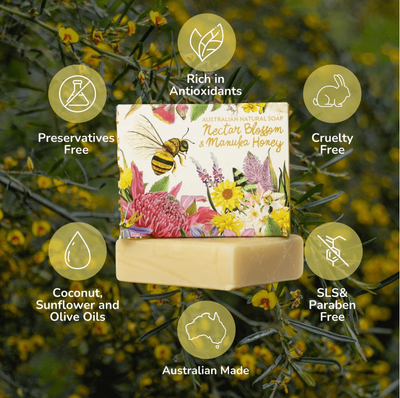 Handmade in Australia using three powerful and natural plant-based oils that are nourishing and moisturising for the skin – Olive Oil, Sunflower Oil and Coconut Oil. Rich in antioxidants, fatty acids and vitamins, these oils will nourish, condition, soften and protect your skin.